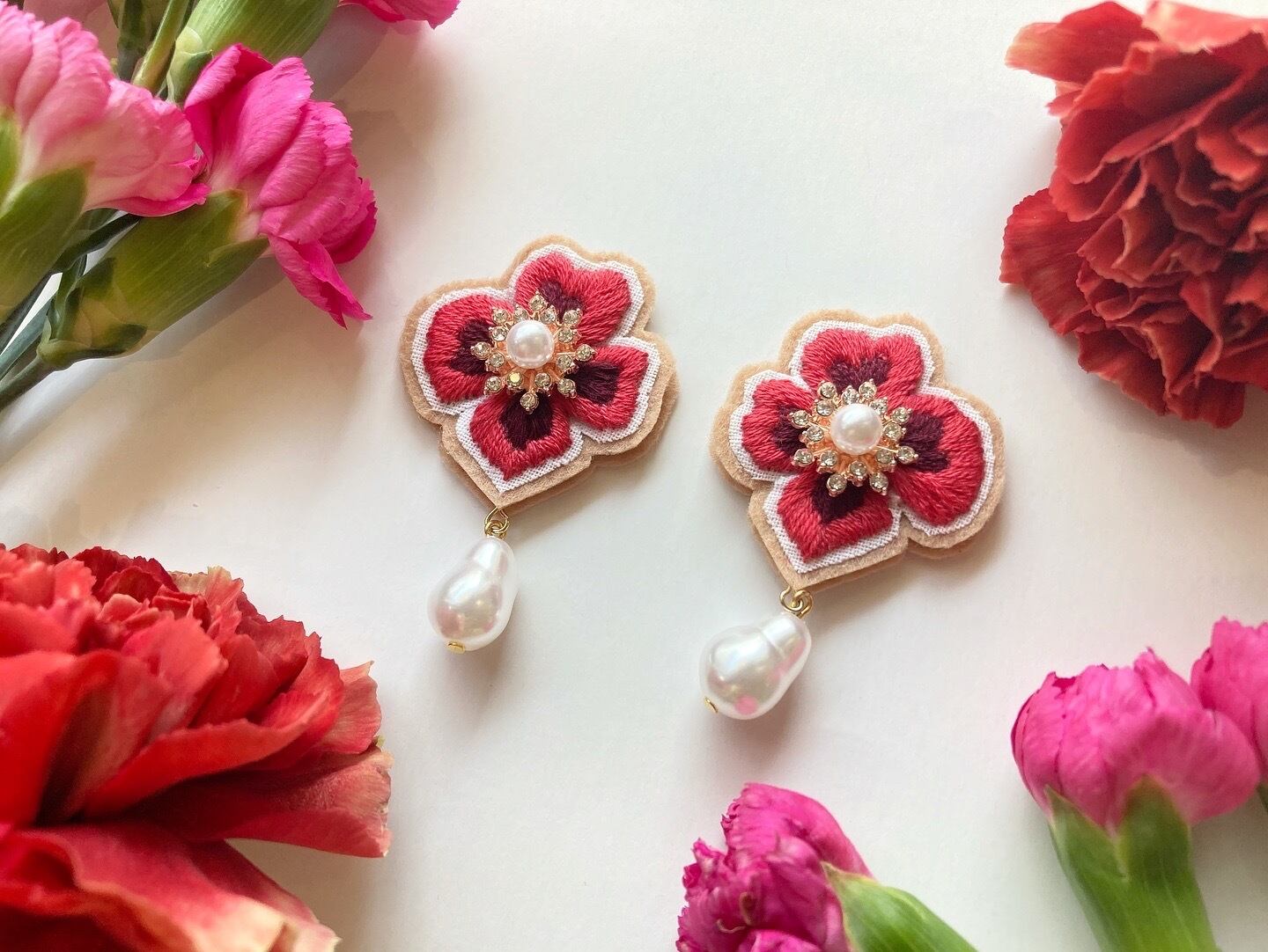 彩りのある刺繍花やパールアクセサリーなどを製作。