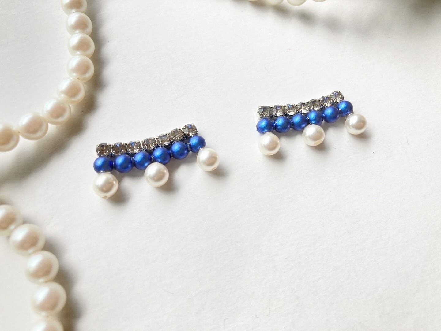 size 約1.2 cm × 2.5 cm (ブルーパール 3mm ホワイトパール5mm )