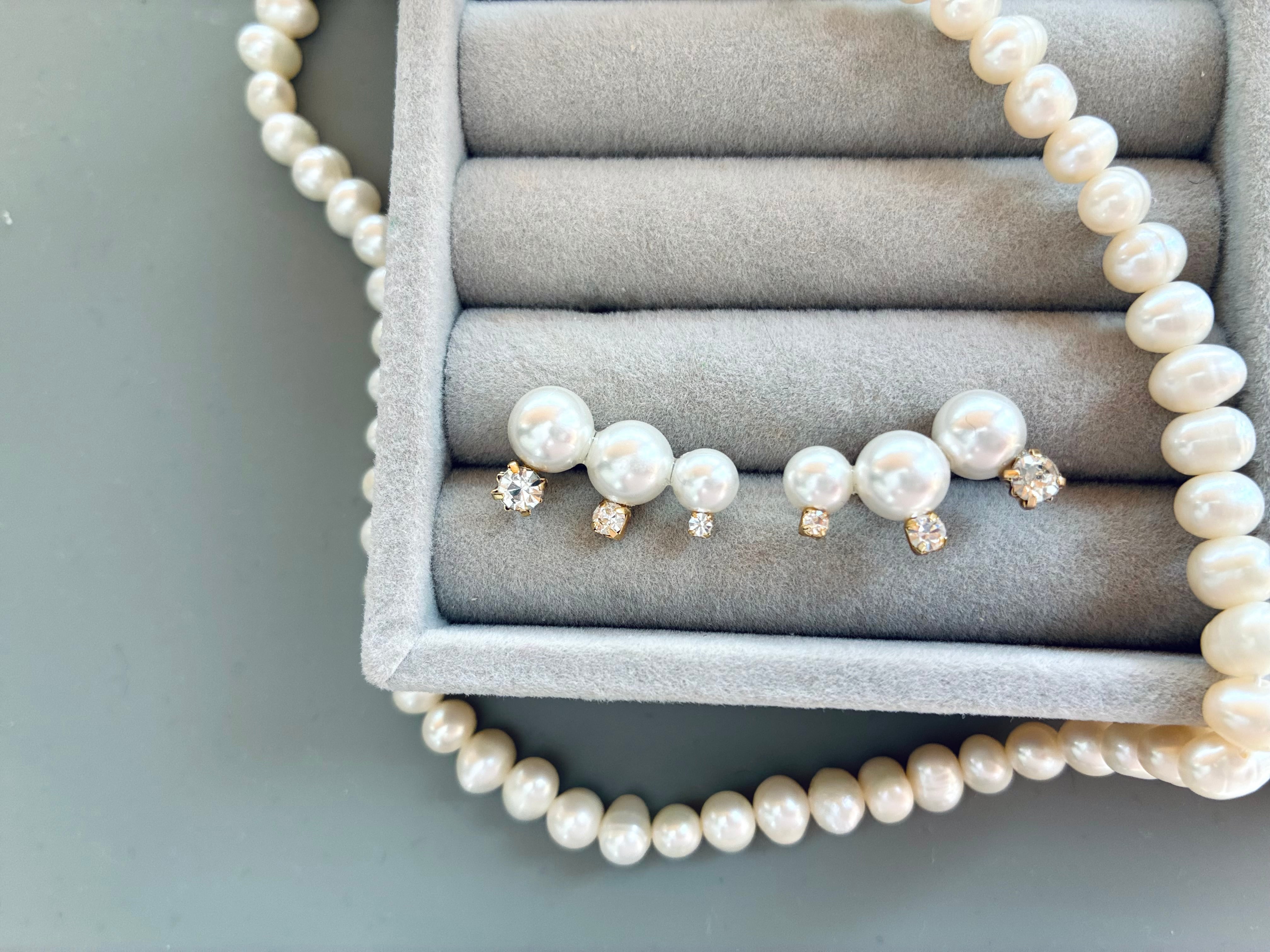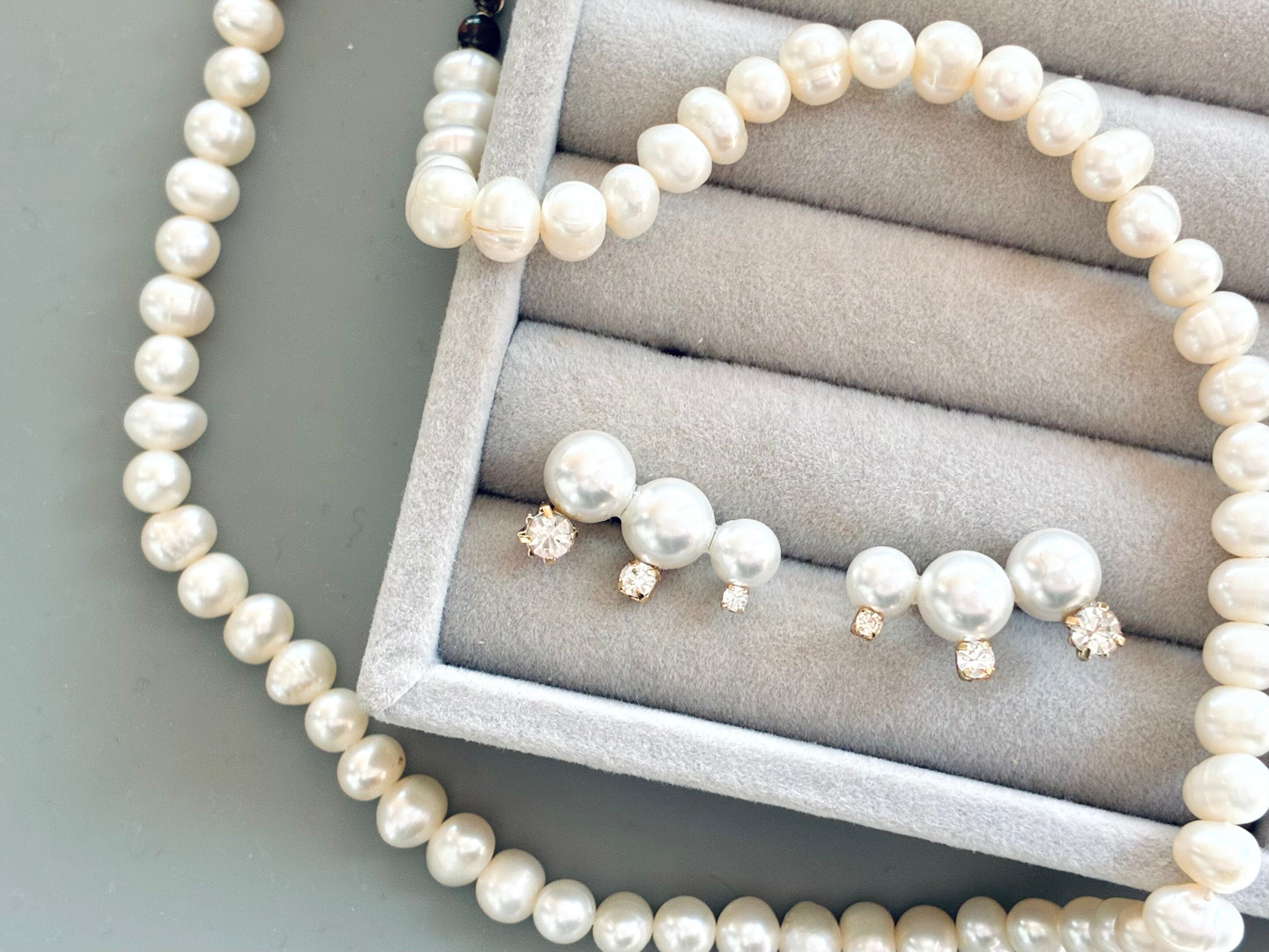 シンプルながらもヒトクセある華やかなパールアクセサリー。